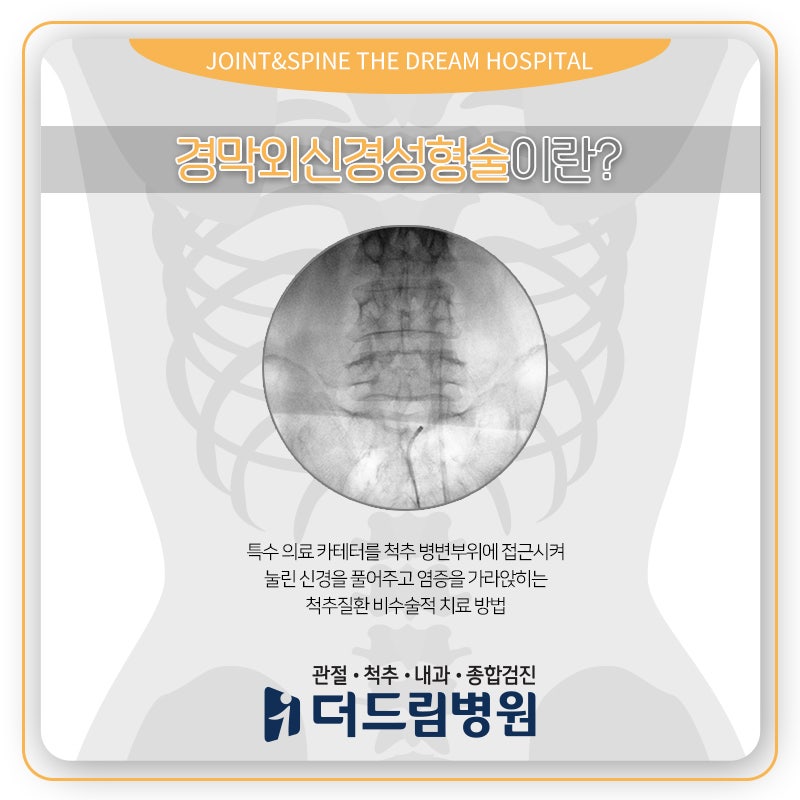 점점 더 많은 사람들이 척추와 관련된 증상의 증가를 호소합니다. 대부분의 척추 관련 문제는 보수적인 접근 방식으로만 해결할 수 있습니다. 그러나 보수적으로 치료를 받으면 충분히 호전을 기대할 수 있지만 만약 그 기간을 놓치면 많은 사람들이 수술을 생각하는데 그 중 가장 좋은 것을 기대하는 것이 신경성형술이다.