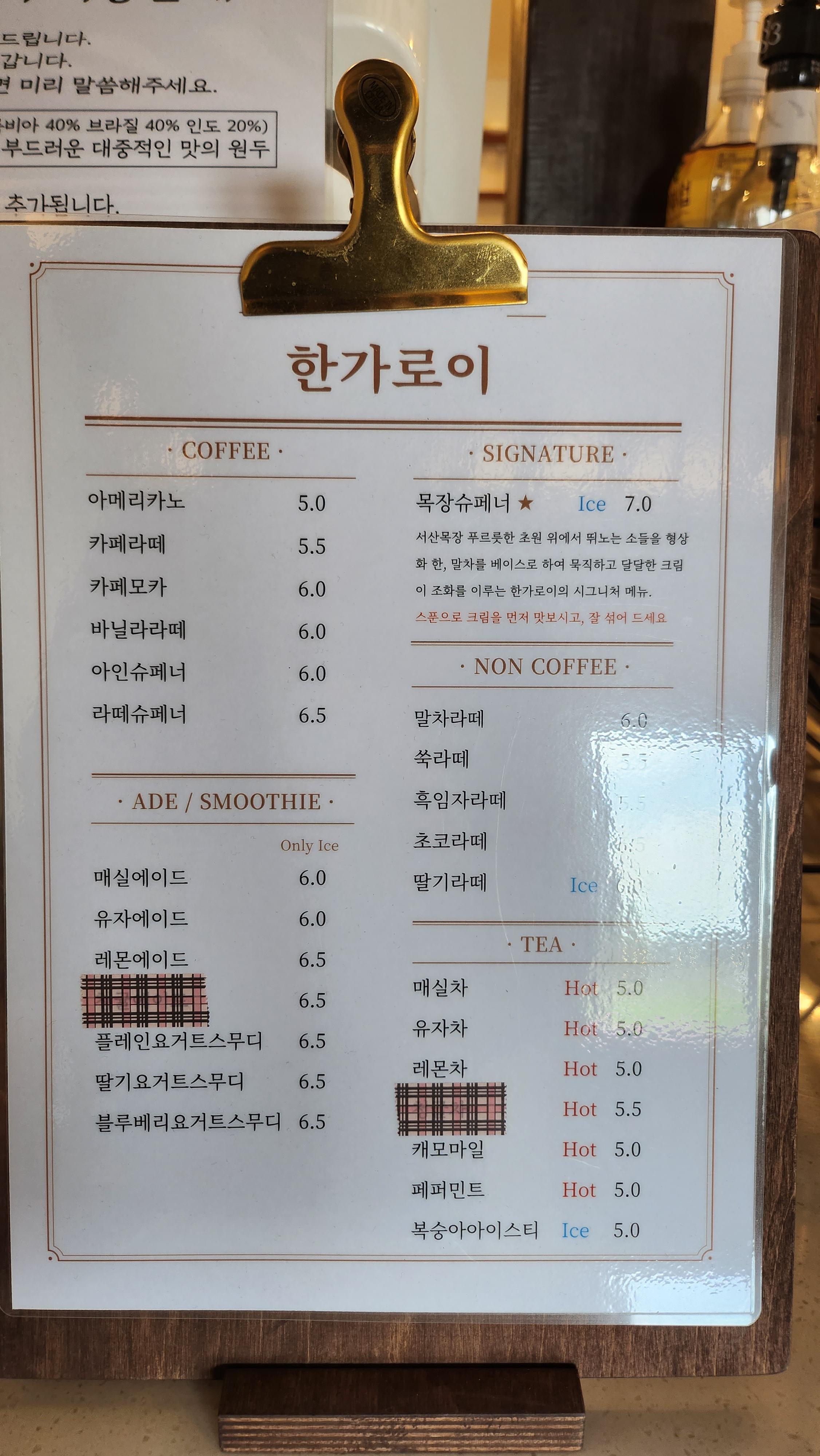 시그니처 메뉴로 널찍한 서산 목장을 연상시키는 목장 스패너를 판매하고 있었다.