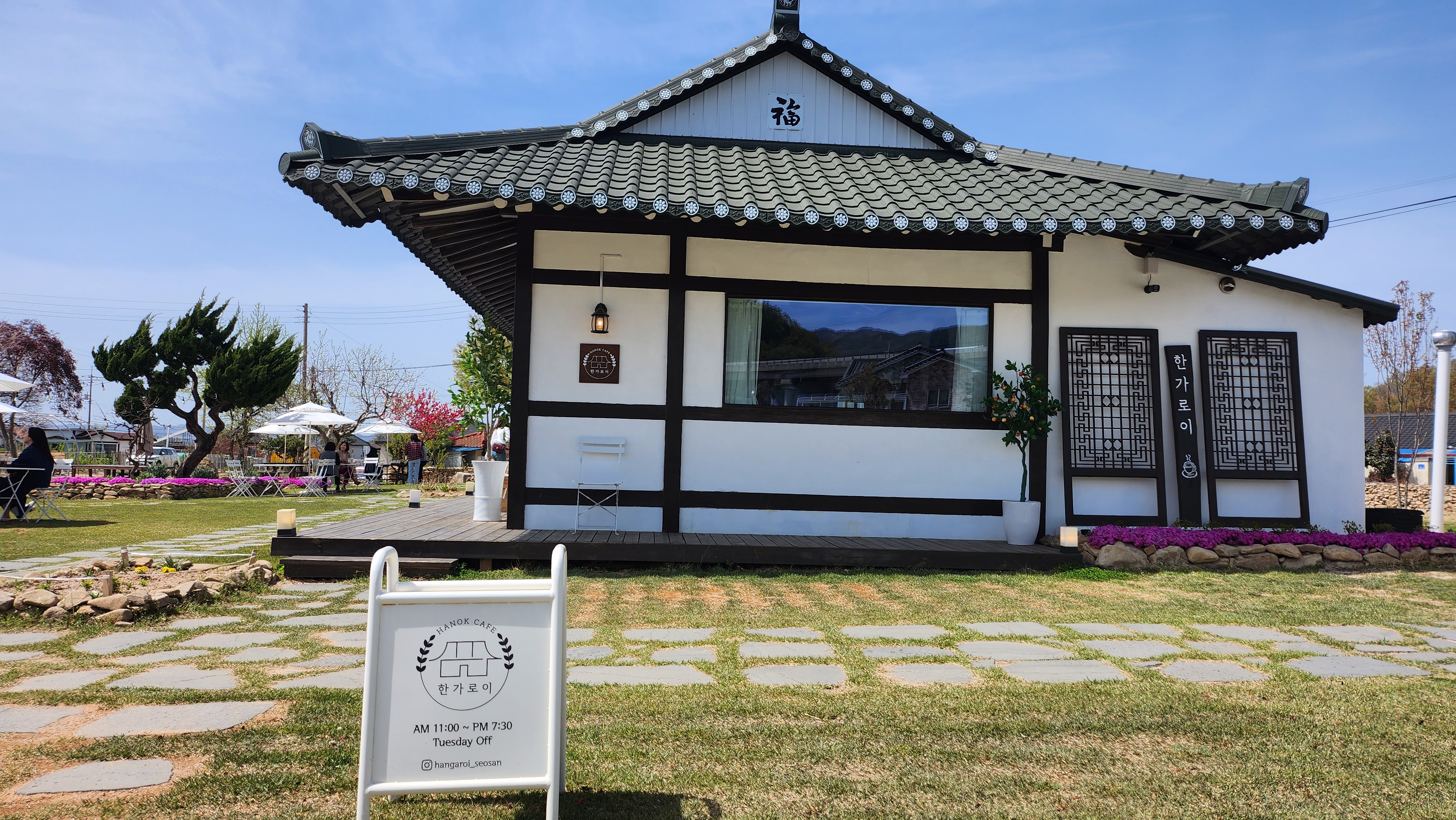 특히 카페 간판은 나무 판자에 하얀 글씨로 써 한국적인 느낌을 줬다.