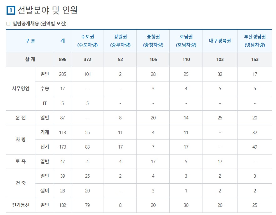 사무직 101명 – 상반기 일반(수도권), 하반기 약 77명